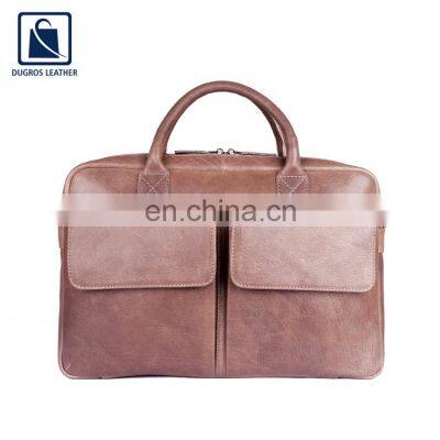 Modern Design Genuine Leather Office Bag with Front Two Pocket and Laptop Compartment