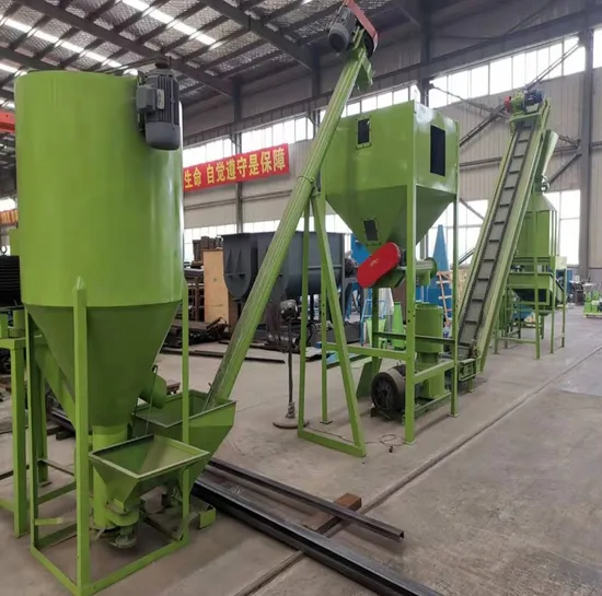 1. This pellet production line includes crusher, mixer, screw conveyor, storage machine, pellet mill, pellet conveyor, cooling and separator, dust collector, packing machine etc. (and we also can equip the suitable machine according to clients' requirements.) 2. All machines will be controlled by electric cabinet under working condition