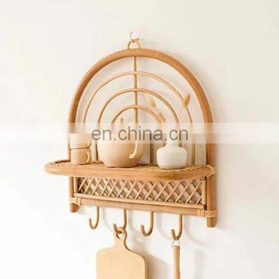 Product DescriptionHot Sale Rattan Wall Shelf Rack With Hook Wall Decoration Vintage Rainbow Rattan Wall Hooks Wholesale Vietnam SupplierYou can easily hang our basket tray on the wall as an eye-catching boho chic wall decor or wall pediment for your kitchen, living room, bedroom, dining room or hallway.The beautiful woven serving tray makes it an ideal housewarming gift or birthday gift for minimalist, natural lovers or those who love rustic home decor. Wicker woven serving tray for coffee table, bar, bread, snacks, food, drink, kitchen. It makes a perfect decorative tray or centerpiece of your dining table..MaterialRattanUsageDecorativeShapelike picsPatternwovenTechnicsRattan HandicraftThemeArtFunctionhanging, decorCommercial BuyerRestaurants, Food & Beverage Stores, Hotels, Gifts StoresSeasonAll-SeasonMore DetailsRecommended to buy in setsRelated ProductRecommended By SellerMain MaterialPacking & DeliveryOur Selling PointsFAQCompany Profile