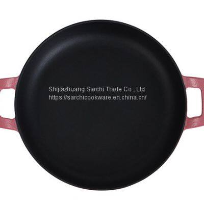 Magenta Enameled Cast Iron Frying Pan with Dual Handles