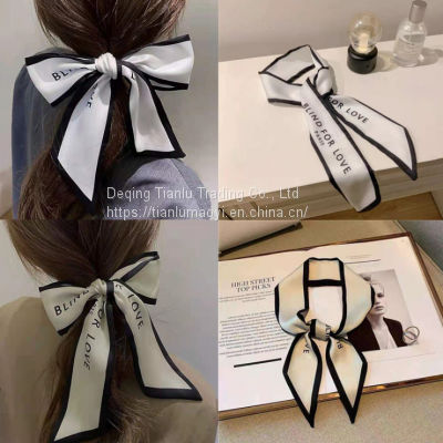French popular scarves with women's hair tied bow ribbon super fairy romantic headband net red tide flowing collar scarves