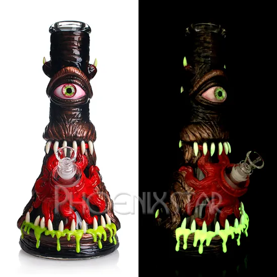 New Arrival 12.5 Inches 7mm Thickness 3D Hand-Made Painting Monstereye Glass Pipe Luminous Smoking Water Pipe Wholesale ChinaProducts Profiles:
