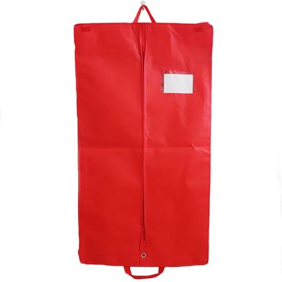A garment bag or suit bag is a container of flexible material, usually used to ease transporting suits, jackets or clothing ingeneral, and also to protect clothes from dust by hanging them inside with their hangers and then in the closet bar. The simplestmodels usually have a zipper that opens from top to bottom, in the middle of one side. They can be manufactured with differentmaterials: fabric, leather, plastic, etc...
