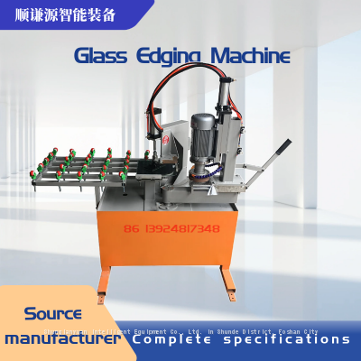 This mechanical equipment is a small edge grinding machine suitable for quick edge trimming and chamfering of products, such as edge trimming before glass tempering, and edge grinding of hollow laminated glass for doors and windows. Quickly chamfer the four edges by rotating the glass on the pulley. A reasonable and compact structural design, solid and stable materials, and a rare helping hand for edge grinding.
