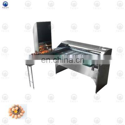 Product Description The egg sorter is used to sort eggs into different grades by weight.It is mainly composed of egg conveyor belt, egg trough, egg classifier and filter floor.The egg sorter is suitable for eggs, duck eggs, goose eggs and other eggs.Suitable for egg processing plant, egg breeding market, egg production enterprises.We have different models, different capacities and materials to meet your different needs.Machine display Machine parameters:ModelTZ-5400Power227W, 50HZProduct code102BVoltage220V, Single phaseCapacity5400 eggs/hourDimension(L*W*H)1.85*1.6*1MAccuracy±1gNet weight200kgGrade5Cross weight300kgFunctionEgg grading & candling Detailed Images Machine features:1. Adopt professional design, each component is strengthened, full of durability.2. Our egg classifier is fully automatic control, saving labor, high precision and stable operation.3. Made of stainless steel, durable and corrosion resistant.4. Our egg classifier is easy to operate, easy to maintain, reliable quality and service.5. Accurate classification, zero breakage rate.6. Widely used, reliable performance, high efficiency, low energy saving.7. Small classifier, intelligent and convenient, suitable for different levels of egg processing enterprises.8. Different models have different capacity and material to choose from.Factory Our CompanyCertifications Contact Us