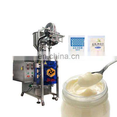 Automatic Liquid Jelly Ice Lolly Sachet Ice Candy Pop Stick Packaging Machine Ice Popsicle Packing MachineProducts DescriptionThis Machine designed for the automatic package of liquid, semi-liquid ,stickly liquid materials. Such as water, honey, cream, shampoo, cosmetic cream, paste, sauce, oil, bean sauce,chocolate sauce, ketchup, perfume etc.According to customer needs, it can be customized to meet the needs of a variety of bag packaging. Such as back seal bags, 3/4 side seal bags, round corner bags, straight cut bags, special cut bags, etc.Machine InformationMain Features1. The section where the material contact is stainless steel as the body of machine is optional for complete or partial stainless steel and all out equipments have passed the CE Standard.2. Optional English or other languages screen display, easy and simple operation. 3. High-sensitivity photoelectric color tracing and digital input of cutting position get more accuracy.4. Packaging speed and length of bags can be set to some extent without further adjustment and parts changing packaging speed and length of bags can be set to some extent without further adjustment and parts changing. 5. Bag-making, filling, sealing, cutting, counting can be achieved automatically and straightly. 6. Bag-making equipment can be changed according to specific requirement of customers and products.Filling Range1~100mlMeasuring TypeLiquid metering pumpPacking Speed30~80 bags/minBag Width15~100mmBag Length30~180mmSealing TypeBack sealing / 3 sides sealing / 4 sides sealingMachine Weight400 KGMachine Power220V,50HZ,1.2KVAWhy Choose UsDession has a professional team to provide customers with various packaging solutions. Fully understanding the needs of customers,engineers design the most suitable solution. We have our own processing and assembly workshop and quality inspection and debugging process to ensure the quality of the machine. After acceptance by the customer, they are packed in international standard wooden cases and shipped.4 Step Easy To OperateThis machine is easy to operate and can be used in only 4 steps.Step 1. Set the parameters and temperature.Step 2. Put the packaging film on the film holder.Step 3. Pour the product into the hopper.Step 4. Start the machine, and the machine will run automatically.We will package the machine's instruction manual and a USB flash drive with machine operation videos together with the machine. Ensure that you can use the machine as soon as you receive it. If you have something you don't understand, our after-sales team will also help you answer in time.CertificationsCustomer PhotosOur customers have covered more than 80 countries around the world.Company ProfileFoshan Jike Bee Automation Equipment Co., Ltd. is a manufacturer of automatic packaging equipment.We are a production-oriented enterprises focused on product innovation, factory direct sales and perfect after-sales service in one.The automatic packaging equipment for granule, powder, liquid and sauce produced by the Jason company is at the advanced level of the industry,it can be customized production automatic material packaging line for all kinds of products .Mainly applicable to: food, hardware, drugs, daily chemicals, pesticides, fruits and vegetables, cosmetics, other industries.The company has its own patent and product technical certification, which can bring customers high quality equipment and worthy of customer trust.FAQQ1:Do you have manual or operation video for us to know more about the machine? Yes, not only manual or operation video, 3D drawing also available to make as per your design,also the video we can make of testing the material from our packaging machine if your packing goods easier for us to find from our local market. Q2:How can I trust you for the first time business ?Please note our above business license and certificate. And if you don't trust us, then we can use Alibaba trade assurance service, guarantee your money, and guarantee your machine's on-time delivery and machine quality.Q3:Is engineer available to serve oversea?Yes, but the travel fee is paid by you. So actually to save your cost, we will send you a video of full details machine installation and assist you till the end.Q4:How can we make sure about the machine quality after we put the order?Before delivery, we will send you the pictures and videos for you to check the quality, and also you can arrange for quality checking by yourself or by your contacts in China.Q5:Will you provides the door to door service?Yes. Please offer us your final destination, we will check with our agent to see if it available, and most of the area is ok for us to clearing and sending in your countries.