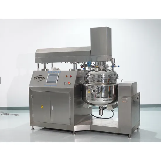 CBZRJ vacuum emulsifying machine is a new type of vacuum emulsifying equipment which integrates the functions of homogenization, emulsifying, mixing, dispersing, pumping, heating and cooling. Mainly applicable to cosmetics, food, chemical, pharmaceutical and other industries. For paste, cream (or colloidal) materials with viscosity below 50,000cp, homogenization, emulsification and stirring are carried out under vacuum. Make it obtain high quality products, the equipment design, manufacturing fully comply with GMP national standards.The equipment is composed of 1.emulsion stirring pot, 2. oil and water pot, 3. vacuum system, 4. heating and cooling system, 5. hydraulic lifting system, 6. dumping device, 7. discharge system, 8. feeding system, 9. electrical control system, 10. temperature control system, 11 working platform, etc.