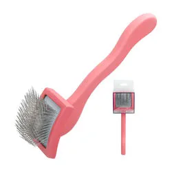 Petdom Wooden Handle Pet Wire Grooming Brush Self-Cleaning Long Pin Slicker Brush for Dogs and Cats Dog Comb Stainless Steel
