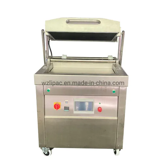 Product Description This machine is suitable for packing shrimp , sausage, meat and seafood etc ,with composite film and plastic tray . Putting the material on the tray and covering the film , the heat from heating plate will be transferred to vacuum chamber . It is to heat and soften the film firstly , then shrink .So it is suitable for the product with sharp and thorns , without any breakage.