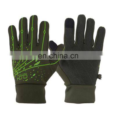 Product DescriptionProduct Type:Running gloves /sporting gloveMaterial:Knitted fabric back&palm,screen touching finger tips,knitted wrist cuffSize available::S/M/LComposition:50% fleece+50%polyester lining.Color:Green/Other customized colorsFeatures:1.High-quality 4-way stretch fabric more comfortable and soft2.Touchscreen fingertip on thumb and index fingers enable to use your phone .3.The inner fleece-like lining keeps your hands warm in the colder weather4.Lightweight easy to carry.5.Light reflecting logo on back helps you stay visible and safe when running or jogging at night.6.Suitable for running, jogging, road cycling, outdoor fitness.Company Profie
