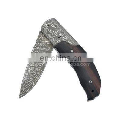 Damascus steel blade folding knife Olive wood handle camping knife