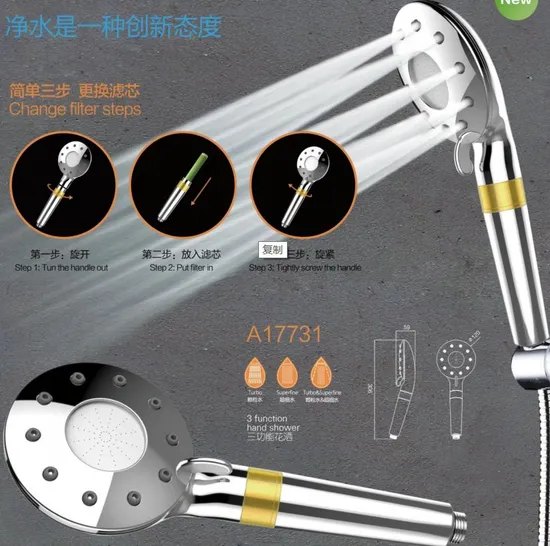 Description | 3 Functions ABS Hand shower in Chrome with Superfine & Ceramic Filter |
