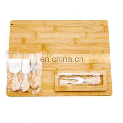 100% Natural Bamboo Cheese Board Set 4 Hidden Drawers Food Serving Charcuterie Board Bamboo Cheese Board With Knife Set
