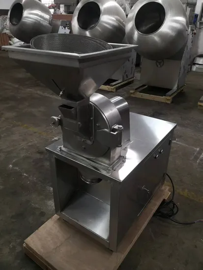 This machine utilizes the high--speed relative motion between the moving and regular tooth set, which makes the material crushed through concussion, rub and crush between the materials. The structure of machine is simple, firm and operating steadily and the result of crushing is well, no dust nuisance. The crushed material is discharged directly from mainframe. The different sizes of the granule are gained through replacing different pore sizes of sieve. In addition, this machine is made of the whole stainless steel, surface of the inside of the machine is smooth, which changes the phenomenon of inboard wall coarse and accumulating of powder in the past. It meets national standard even more to make medicines, food, chemical industry, etc, and meet the requirement of GMP.Technical Data