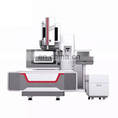 Features:This series of machine tools are used with a matched impulse electric cabinet.Z-axis is driven by Japan Sanyo DC servo motor, with a Z-axis numerical control features, X Y axis adopts precise ball screw, and precision optical grating digital display shows the coordinate which makes coordinates have high positioning accuracy.Electric cabinet adopts the most advanced industry-specific industrial control board,strong function, good stability, simple operation, as long as input a few parameters such as Z-axis depth,it will select a set of suitable data from the expert database system that matches the processing, and process from the rough processing to finish once automatically.SpecificationUnitDK7725MMaximum workiece sizemm500x400Stroke(X/Y)mm320x250Maximum cutting thicknessmm260Maximum taper/±10°/60mmMolybdenum wire diametermmφ0.13-φ0.18Wire speedm/minMax.speed 600Machine net weightKg1500Machine dimensionmm1730x1650x1900Maximum workpiece weightkg250Water tank filtration precisionmm0.005Water tank volumeL110Maximum cutting speedmm2/min200Best surface roughnessμm≤Ra0.8Maximum working currentA6PowerKVA2