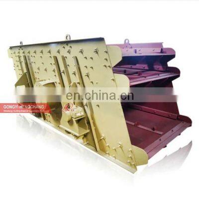 Products Description Circular vibrating screen is a multi-layer, high-efficiency new vibrating screen. The circular vibrating screen adopts a cylindrical eccentric shaft exciter and an eccentric block to adjust the amplitude. The material sieve has a long flowing line and many screening specifications. It has a reliable structure, strong excitation force, high screening efficiency, low vibration noise, strong and durable, maintenance Convenient and safe to use, the round vibrating screen is widely used in product classification in mining, building materials, transportation, energy, chemical and other industries. According to the material products and user requirements, high manganese steel woven screen, punching screen plate and rubber screen plate can be used. All kinds of screen plates can meet the different requirements of the screening effect. This series of circular vibrating screens is seat-mounted. The inclination of the screen surface can be adjusted by changing the height of the spring support.Details ImagesWorking principleThe crushed material group with different particle sizes passes through the single-layer or multi-layer sieve with uniformly distributed holes multiple times, and the process of dividing into several different levels becomes sieving. The particles larger than the screen hole are left on the screen surface, which is called the sieve on the screen surface, and the particles smaller than the screen hole penetrate the screen hole, which is called the sieve on the screen surface. The actual sieving process is: after a large amount of mixed materials with different particle sizes and mixed thicknesses enter the sieve surface, only a part of the particles are in contact with the sieve surface. Due to the vibration of the sieve box, the material layer on the sieve is loosened, so that the large particles already exist The gap is further expanded, and small particles take the opportunity to pass through the gap and transfer to the lower layer or transport aircraft. Due to the small gaps between small particles, large particles cannot pass through, so the original disordered particle group was separated, that is, the particles were stratified according to the size of the particles, forming the arrangement rule of small particles below and coarse particles above. The fine particles that reach the sieve surface are smaller than the sieve holes, and finally the coarse and fine particles are separated to complete the screening process. However, there is no sufficient separation. When sieving, a part of the sieve is usually left on the sieve. When fine particles pass through the sieve, although the particles are smaller than the sieve pores, they are different in the degree of difficulty in sieve penetration. The particles with similar material and sieve pore size are more difficult to pass through the sieve, and the gap between the particles through the lower layer of the sieve is more difficult.Product Characteristics(1) Large processing capacity and high screening efficiency.(2) The vibrator adopts bearing thin oil lubrication and external block eccentric structure. It has the characteristics of large excitation force, low bearing load, low temperature and low noise. (The bearing temperature rise is less than 35 °).(3) The overall disassembly and assembly of the vibrator is convenient for maintenance and replacement, which greatly shortens the inspection cycle. (It only takes 1 to 2 hours to replace the vibrator).(4) The side plate of the screen machine adopts the whole plate cold work, no welding, high strength and long service life. The connection between the beam and the side plate adopts torsion shear high-strength bolt connection, no welding, and the beam is easy to replace.(5) The screen machine uses rubber springs to reduce vibration. Compared with metal springs, it has the advantages of low noise, long service life, stable over-common vibration area, and small dynamic load at each pivot of the screen machine.(6) The flexible coupling is used to connect the motor and the exciter, which has the advantages of long service life and small impact on the motor.Product Paramenters Model Screen DeckInstallation Slope(°)Screen Size(m2)Screen Pore Size(mm)Feeding Size(mm)Capacity(t/h)MotorPower(kw)Weight(kg)YK12301153.64-50≤30010-755.514682YK12302153.64-50≤30013-785.522533YK12303153.64-50≤30015-807.529784YK12304153.64-50≤30017-907.53892YK12351154.24-50≤30020-1505.517292YK12352154.24-50≤30020-1505.524743YK12353154.24-50≤30022-1507.531584YK12354154.24-50≤30022-1507.541602YK15452206.755-50≤30022-1501153083YK15453206.755-50≤30050-1801559154YK15454206.755-50≤30050-1801571262YK15542208.15-50≤30050-2001552843YK15543208.15-50≤30056-2001561864YK15544208.15-50≤30056-25018.572842YK18542209.725-80≤30056-20018.558263YK18543209.725-80≤30056-30018.573684YK18544209.725-80≤30056-3002282812YK186022010.85-80≤30060-4002261953YK186032010.85-80≤30080-4002276134YK186042010.85-80≤30090-5003086502YK216022012.65-80≤300100-7202268563YK216032012.65-80≤300100-7203091124YK216042012.65-80≤300100-72030104052YK246022014.45-80≤300130-7503085033YK246032014.45-80≤300130-75037104114YK246042014.45-80≤300130-7504512068Company Profile