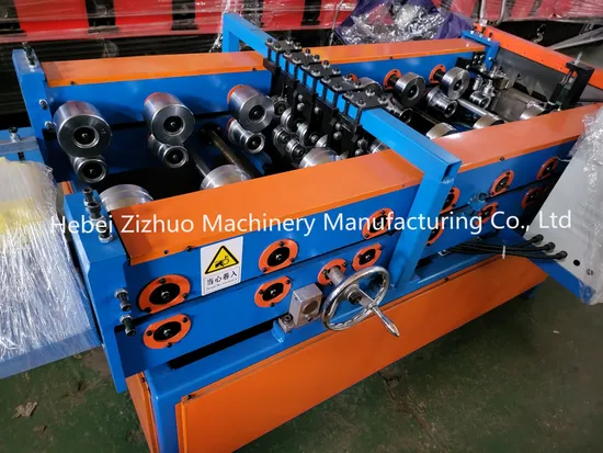 1. Main technical conditions of the forming line:Temperatura: -10 ºC ~ 35 ºC(Temperature:-10ºC~35ºC)Voltage:110volt 60Hz or 220volt 60Hz(or according to customer requestAir pressure:0.6~1.2MpaTotal Power:≈4.5kw)Color:Production capacity:0-15meters/min(without cutting)Dimension (L*W*H): L≈ 1.6 m, W≈ 1.5 m, H≈ 1.2 m 1. Flow Chart of roll forming machine:)2. Main components: