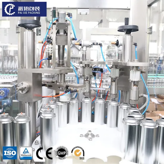 Working parameters can be set easily without the need to train operators, which helps improve work efficiency. Operation panel language can be customized in different languages, if you need, please contact us. Bottle Feeding TableVariable speed bottle feeding table is the basic feeding system of aerosol spray bottle filling line, operator will put empty bottles on the table, with gear motor driving, the bottle will be arranged to the conveyor, the machine will be able to work with different size bottle. Liquid Filling MachineThis machine adopts position pump, which is suitable for different kinds liquids, with high filling speed and high filling precision. The pump uses quick-fit removal structure: easy cleaning and disinfection. The filling nozzles adopt anti-drip and anti-drawing filling device. The machine adopts PLC and human-computer touch screen control systemSpray Valve feeding machine