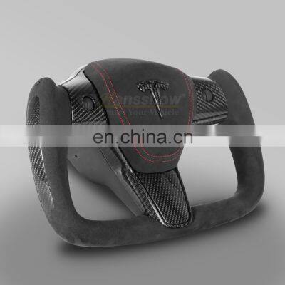 Products DescriptionUniversal Carbon Deep Dish Drifting Black Sport Car Steering Wheel LED For Tesla Model 3 Y 2017 2018 2019 2020 2021Product nameModel 3 Y Car Steering WheelMaterialAlcantara/carbon fiber/leatherCar MakeFor Tesla Model 3/ Model Y 2017-2022StyleFlat/Deep DishMOQ1pcsColorCustomizedDelivery Time5-10 days withinServiceCustom style/ Accept OEM/ODM Service/24hrs onlineRecommend ProductsPower FrunkTesla Carplay ScreenAuto Presenting DoorPilot Light Yoke Steering WheelAuto Door Handle Active Sound ExhaustCar Audio UpgradeScreen Swiveling MountRear Bumper LightIlluminated Door SillEagle Eye Tail LightHonest Cooperation, Mutual Benefit And Win-win!Company ProfileHansshow, established in 2018, is an innovative enterprise focus on research, production, sale and service of Electric tailgate, yoke steering wheel,Auto Soft door close, Real dry carbon fiber parts, Auto led taillight, Electric sliding door, Active sound system, Carplay display screen and etc.Our factory area up to 5000 square meters, stuff more than 60 people and we also have obtained C E and ROSH certificates. the company own considerable development and get proud sales results, clients come from 130 countries and nations.Selling well in all cities and provinces around China, our products are also exported to clients in such countries and regions as USA, Europe, south America East-middle, Asia and other regions.Packing & DeliveryDelivery Way:Express shipping: DHL/Fedex/UPS/TNT;Cargo shipping:Air Flight/Sea shipping;Delivery Time:Delivery within 7 days after payment;Our Services:1.24 hours online service, please feel free to contact us.2.Support wholesale, OEM group purchasing,Factory direct sales with good prices.3.Over 500 installation points in 26 different countries. Send enquiry to us now. vide product installation video,Product installation engineer online technical guidance.