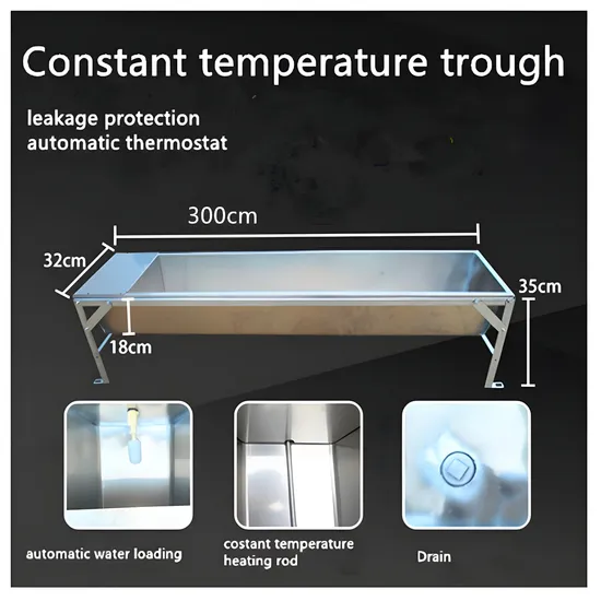1. Constant Temperature Trough Our Constant Temperature Trough features an efficient heating rod that ensures stable water temperatures, providing a comfortable drinking environment for livestock. Built for durability and safety, it is ideal for various farming operations, enhancing overall productivity.