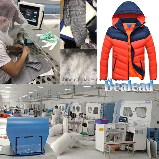 Using motor to import down and feather to storage box.Filling material:duck down, duck feather,goose down,goose feather,milkweed velvet,ball fiber,fake down and etc.