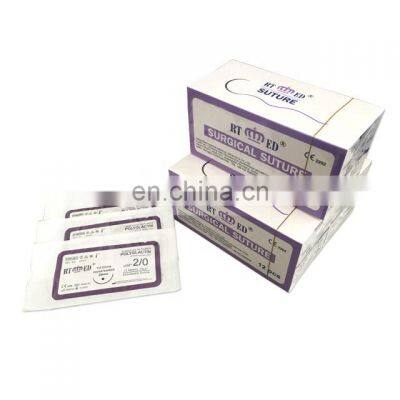 PGLA POLYGLACTIN 910 ( Vickyl )Product Description:Polyglactin (PGLA) is a sterile absorbable synthetic, multifilament suture composed of polyglactin 910 glycoside an lactide derived from glycolic and lactic acids, coated with a blend of caprolactone/glycolid copolymer and calcium stearoyl lactylate. Basic Information:MaterialPoly (glycolide-co-l-lactide 90/10)CoatingPoly (glycolide-co-l-lactide 30/70) + Calcium StearateStructureCoated multifilament; Braided coatedColorViolet, undyedType of absorptionHydrolysisSterilizationEthylene oxideTensile strength Up to 30 daysAbsorption time56-70 daysSizeUSP 2, 1, 0, 2/0, 3/0, 4/0, 5/0, 6/0, 7/0Package12 pieces /box, 50 boxes /carton Features:High tensile strengthSmooth tissue passageEasy knotting and tie downExcellent knot securityReliable absorbabilityApplication:General soft tissue closing and/or ligation,Especially in: General surgery; Skin closure; Gastrointestinal surgery; Gynecology; Obstetrics; Plastic surgery; Urology; Ophthalmic surgery; Orthopedics Available Surgical NeedlesAvailable Surgical Sutures SizeAbsorbable Surgical Sutures ComparisonPACKAGE TERM: Each piece is packed in an Aluminum foil bag and then in a Paper-poly Pouch 1) 12 pcs/box, 50 boxes/carton Carton size: 32x30x27cm3 Gross Weight: 4.5KG. Net Weight: 4KG Terms of Trade: FOB Recommended Port: Qingdao / Shanghai, China The buyer should cover the printing mold charge if the packing is customized. PAYMENT TERM: T/T, Western Union, Paypal, and L/C at sight are acceptable. 30% of payment in advance as the deposit and the balance will be paid before delivery. DELIVERY: In 30-60 days upon the receipt of the deposit, also depending on the order quantity. QUALITY AND QUANTITY TERM: All the products are in conformity with USP and EP. CE, ISO Certificates. OEM service is available. MOQ: 100 dozen per item. MAY OUR PRODUCTS MAKE A COMPLEMENT FOR YOUR BUSINESS AND IMPROVE YOUR VALUES TO THE BIGGEST