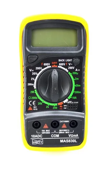 Overview ·The MAS830L multi meter is a hand-held 199 digits digital multimeter integrating voltmeter, ammeter and ohmmeter with high reliability and safety,as such is easy to read and more practical than other multimeters.Also it's an advanced multi tester ensure safe operation in CAT II 600V,designed to be used safely and accurately by electricians at work places or the people who need more capabilities than the standard measuring tool.It bring you not only practical, but also simple, convenient and fast. ·This meter can measure AC/DC voltage,DC current and resistance accurately.In addition,it has more functions,such as diodes measurement,transistors measurement,continuity detection,data hold,backlight LCD screen,low battery reminder and etc.,which is widely-used in home, school,office and factory.So it is really an ideal tool for beginners in electronic and electrical industry.