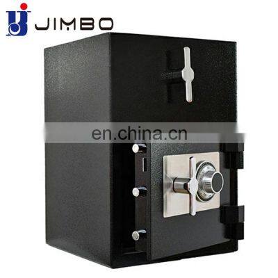 Products DescriptionDepository safe*Product NameJimbo steel depository security safe*Brand NameJimbo*Product ModelDH Series*MateritalHigh quality cold rolled steel sheet Q235*Door Thickness10 mm*Body Thickness3 mm *LockElectronic Digital Lock*HandleBrushed solid steel handle*CertificateJIS, CE , RoSH , SGS , ISO 1182*Available colorWhite , Black , body and door can be in different colors*Packing5 layer standard export carton with thickened foam*SurfaceDurable electrostatic powder coating*Main productsFireproof safe, Bulglarproof safe, Home safe ,Vault door, Watch winder safe, Hotel safe box, Steel Lockers, Filing CabinetsRecommend ProductsCompany ProfileFoshan jimbosafe Co.,Ltd established in 2012, exporting our safe box to more than 118 Countries with over 10 years history . Located in Foshan,Guangdong, Jimbo owns 5,000m2 Modern Workshop, 50 Skilled workers,3 Reliable QC and 10 production machines and passed 4 certification (CE, ROHS, SGS, ISO). Through our experienced sales team, we finish 50,000,000.00+RMB turnover per year and keep growing.As Assessed Supplier by , we hope can cooperate with you!Our TeamProduct packagingFAQProduction relatedIf you have any other questions, we would be more than happy to answer them for you. Please contact us below:Mrs. AnnEmail: annie@jimbosafe.com / Jessica@jimbosafe.com / sales01@jimbosafe.comMob & Wechat & WhatsAPP ::+861666567569Q: Do you provide samples?A: We can provide a sample with freight and handling charges at your expense.Q: How do you send your samples?A: We usually send via international couriers such as DHL, FedEx or UPS. We can also work with you if you have other alternative arrangements.Q: What is your lead time? A: Our production lead time is typically between 25 to 45 days from receiving payment, depending on chosen items, quantities and specific requirements. We can have off the shelf goods ready to be shipped in 5 to 10 days if there are available stock and no change request.Q: Is there any warranty offered for the product?A: A two-year Limited free-warranty is offered.Q: What are your payment terms?A: We can work with L/C or 30% deposit upon ordering and remaining balance prior to shipping of products. We can provide photos of finished goods and also accept on site final inspection.