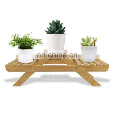 Natual Bamboo Wooden Flower Shelf Rack For Garden