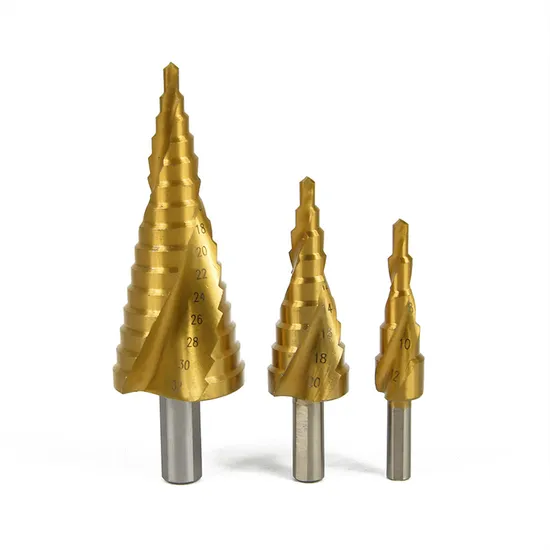 Product Description 2 spiral flutes tin coating 3 pc step drill set for 4-12mm 4-20mm 4-32mm