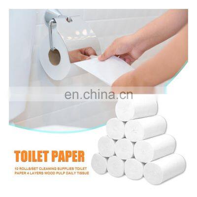 10 Rolls/Set Cleaning Supplies Toilet Tissue Paper 4 Layers Wood Pulp Daily Tissue Paper