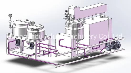 Standard configuration- Emulsifier, water phase tanks, oil phase tank - Vacuum pumps and sync solenoid valves - Emulsifier and material filter - Hydraulic lifting system and mixing system- Stainless steel platform- Inverter and electrical control box