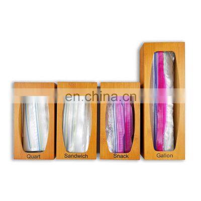 Customizable High Quality Elegant Kitchen Food Wooden Bamboo Dispenser Ziplock Bag Storage Organizer Dispenser For Gallon