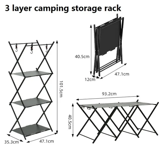 Size(cm) | Storage rack size:47*33*115.5cm table size:93.2*47*43.2cm | Color | black/khaki/or as request |