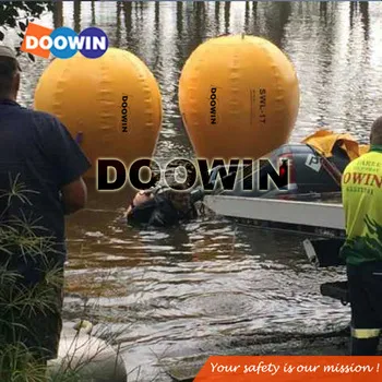 DooFlex Open Bottom Parachute type air lifting bags are fabricated from heavy duty polyester cloth coated with PVC made in German. It has safe working load of 6: 1. Each Open Bottom Air Lift Bag is equipped with manual air dump relief/dump valve, which can be controlled easily to change the buoyancy by the bottom rope. And certificated heavy duty polyester webbing with end shackles, and air inlet stainless/ brass ball valves are equipped for the lifting operation. Each parachute lifting bag is complete and ready for use when leaving our manufacturing facility.