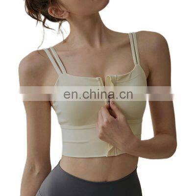 Sports shock wears outside underwear women summer with zipper running high strength training fitness yoga sports vest braDesign :OEM and ODM Orders are welcomeFabric Type :1: 87% Nylon + 13% spandex, 305-315GSM2: 75% Nylon + 25% spandex, 230GSM3: 75% Nylon + 25% spandex, 210GSM4: 75% Polyester + 25% spandex, 210GSM5: CustomFabric Specification :Breathable, durable, moisture wicking, quick-dry, great stretchy, comfortable, flexiblePacking :1pc/polybag, or as your requirementsColor :More than 48 colors availablePacking & DeliveryFAQQ-Will the fabric has color fading issue? A: No, we will QC every batch of fabric to make sure they meet the International Quality Standard before bulk production.Q-What's the MOQ?A: Flexiable MOQ is acceptable, lower to 100pcs.Q-Can I do customized design?A: Yes, we offer customized design/logo/size/color/package etc.Q-What's the sample policy?A: Sample fee: 30USD/PC, sample time: 7 working days.The sample fee is refundable when bulk order.Q-What's the bulk leadtime?A: It takes 15-25 days after all details confirmed.Q-Worried about our product quality?A: We will offer free pre-production samples for your confirmation before bulk production. And we will make sure every details of bulk production same as pre-production sample.Q-If there is any defective items of bulk order, how to process?A: We are responsible for our product quality. Please send your feedback to our sales representitive, we will response in 24 hours and provide solution in 3 working days.