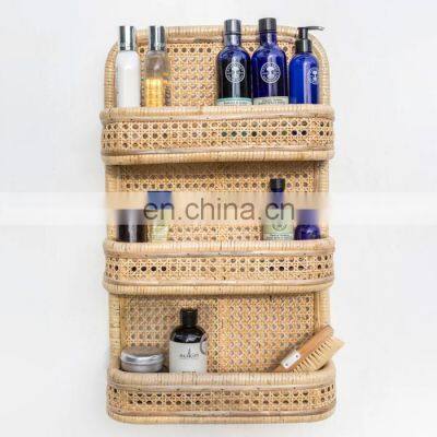 Product DescriptionHot Sale Rattan Shelves Book Shelf for Kitchen, Bathroom, Living Room Wicker Plant Hanging Wholesale Vietnam SupplierThree-Tier Rattan Shelves is handy but beautiful and very versatile. Three-Tier Rattan Shelves is great for displaying the items on there due to the low supporting bar of each shelf, such as for a spice rack, beauty shelf or children’s book shelf. Shelf is ideal to use in rooms like kitchen, bathroom, living room, kids room and nursery. There are two hooks on the back to secure this piece to the wall.Materials: Rattan and caneDimensions: 60 x 36 x 12 cmWeight: 1.25 kgMaterialRattanUsageDecorativeShapelike picsPatternwovenTechnicsRattan HandicraftThemeArtFunctionhanging, decorCommercial BuyerRestaurants, Food & Beverage Stores, Hotels, Gifts StoresSeasonAll-SeasonMore DetailsRecommended to buy in setsRelated ProductRecommended By SellerMain MaterialPacking & DeliveryOur Selling PointsFAQCompany Profile
