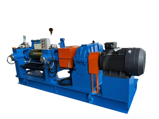 Equipment summary Introduction: Rubber mixing mill is engineered to provide unmatched performance for masticating and kneading natural rubber, synthetic rubber, eva or pvc pellets with various chemical materials, the final materials can be fed to calender, hot presses or other processing machine for making rubber or plastic products. This machine is mainly used to plastic, hot mill and mixing mill of natural and synthetic rubber for rubber product factory. Rubber mixing mill is used for plasticizing, mixing, thermal refining and sheeting of rubber(plastic), widely used for tyre factory,conveyor belt factory, reclaimed rubber factory and shoes factory, etc. Advantages: 1) Hardened gears reducer ,low noise ,high quality, competitive price. 2) The machine main uses are following in rubber product factory: Natural rubber refining, raw rubber and compound mixing. Rubber beating, mixing and rubber tab letting. 3) This machine is double roller opening to be used for rubber mixing. It consists of seat, Frame, Rubber, Driving device, Lubricator and cooler, range adjusting device of roller. Safety brake, Motor and reducer, etc. 4) The roller is made from safety cooled and hard cast steel, smooth surface is polished. in term of different case. Saturated steam and cooling water can be inputted in the empty roller to adjust speed of roller. Colloidal particles are drawn into the gap of the two rollers which make relative rotation in different velocity to mix rubber. 5) Complete Emergency stop &interlock protection system with reverse running function ensures a 100% safety 6) High efficiency, energy saving and brand new mill design significantly reduces installation space. 7) Rollers are made of NiCrMo alloy steel through centrifugal casting, hardness is around HS76. 8) Roller bearings are adopted with ZWZ, best brand in China, other brand is optional upon requirement. 9) Roller bearing supports and glands are made of superior casting steel through annealing treatment. 10) Frame is made of casting iron through annealing treatment, steel welding structure is also available. 11) Bedplate is integral welding structure, made of superior steel through annealing treatment. 12) Rducer adopts with precision hard gears secures high torque, low noise and extra long service life. 13) Speed ratio gears are made of 42CrMo through heating treatment. Features: 1) The roll is made of chilled cast iron of vanadium and titanium alloy, so the surface is hard and wearable.The internal processing can make the temperayure of the roll surface well-proportioned. 2) This machine has overload protection devices,and the major comonents cannot be damaged because of over loading. 3) This machine is equipped with emergency braking device. When an emergent accident haens, draw the pull rod, and then the machine will stop at once. It is safe and reliable. 4) The transmission system adopts hardened teeth reducer, which has comact structure, low noise and high efficiengy. 5) The base of the machine is a complete frame, it's very convenient for installation and not vibration.