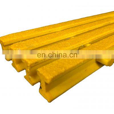 Product DescriptionFRP Pultrusion T-bar as Grating frp pultrusion profiles materials gratingFRP pultrusion grating: efficient and cost effective solution for flooring, structural integrity, without metal's corrosion. The FRP Gratings offered by us are manufactured by assembly of pultruded I-Beam & pultruded cross roads. In the FRP Gratings, the distance between I-Beam & cross rods depend upon various load conditions. These FRP Gratings offered by us are acknowledged for offering advanced solutions against critical problem of corrosion in industrial environment.Features: * Corrosion resistance * Maintenance free * Light weighted * Anti skid * Non magnetic * Chemical resistant * No thermal conductivity * Dimensional stability * Durable Application : * Chemical Plants * Refineries * Power Plants * Marine * Off shore installations * Effluent Treatment PlantsPultruded FRP Grates offer higher strength characteristics and are ideally suited for heavier loads across longer spans than molded grating. The composite matrix of pultruded grating utilizes a higher fiberglass content to resin ratio resulting in a stiffer grate but with less corrosion resistance. Pultruded grating is a unidirectional structure and being an assembled product, allows for larger panel sizes for better utilization.Load Bars: Pultruded grates are constructed of a series of independent load bars with either an "I" or "T" profile. "I" bars are typically used for industrial applications having a higher load capability"T" bars are typically used for pedestrian applications having a wider walking surface.Open area between the load bars can be as high as 60% or as small as 12% depending on your application and loading.Resin Systems: available in two resin formulations both containing a fire retardant that offers an ASTM-E84 flame spread rating of 25 or less. ISOFR Isophthalic Polyester Fire Retardant Yellow / Dark Gray used for moderately corrosive environments VEFR Vinyl Ester Fire Retardant Yellow / Dark Gray used for highly corrosive environmentsSpecificationType Height(mm)Top edge width (mm)Space between (mm)Clearance width(mm)Open area(%)Estimated weight kg/m2I-4010251525104017.8I-5010251530155015.1I-6010A251538236012.2I-6010B25819.811.86013.7I-4015381525104022I-5015381530155019.1I-6015381538236016.2I-4012301525104019.1I-5012301530155016.1I-6012301538236013.1I-40125321525104028.5I-50125321530155024.2I-60125321538236020.1I-4020501525104028.5I-5020501530155024.2I-6020501538236020.1Details ImagesFiberglass grating manufacturer FRP/GRP composite pultruded and molded gratings show After-sales service1.Provide install video if necessary and other install documents2.Quality guarantee is 1 year. 3.If it was proved due to the quality problem,we will bear all cost for replace during quality guarantee time.Packing&ShippingRelated Products1, high quanlity and best price Our company is Professional manufacturer , cheap price and guaranteed quality. we can do the test as your required , such as SGS, ISO and so on. 2, Accept customized, Our company accept customized, if our catalog don't the size you need, is doesn't matter, we can according your required to produce it. 3, Best serviceAnswering emails or solving questions timely. Delivery and update information on time. Trust, good quality and service are the basic of long term business. I think you will satisfy with our service. Give us your PO, let us cooperation for a long time.FAQ