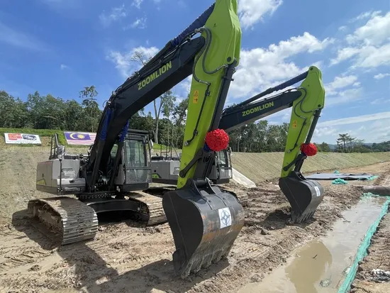 Mid-size 22 tons 1 cubic m3 bucket hydraulic crawler excavator ZE215G high temperature dusty desert red sandstone shale breaking in Saudi Arabia