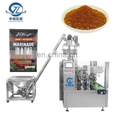 Product ParamentersItem NO.ZC-L200/250DimensionsL4000mm×W2000mm×H2100mmPacking Speed16-60 Bags/min (depending on products character and filling volume)Packing Bag SizeL: 100-350mmW : 60-200mm/80-250mmWeight1800KGAir Compressed air consemed≤0.6m³ / minAccuracy±1g (≤100g) / ± 1%( >100g) according to materialApplicationSuitable for high measuring accuracy,and brittle material packing,such as soy milk powder,flour,walnut,milk-tea powder etc.Working Procedure1.Bag feeding2.Coding3.Opening4.Filling A5.Filling B6.Heat sealing A7.Heat sealing B8.Forming and outputDescription1.According to customer demand for customized, to recommend the appropriate products to customers.2.Storage racks devices which can Satisfy the products short stop ,which can keep the production line work continuously.3.Good service,If you have any questions, you can communicate by telephone video.Recommend ProductsProducts DescriptionCompany ProfileFAQTrade patterns 1. Lead time: 15-20 working days after receive deposit2. MOQ: 1 set.3.30% deposit+ balance payment before delivery by T/T, western union, cash.4. Loading Port: Shantou or Shenzhen Port Export Process 1. We will prepare goods after receive deposit 2. We will send goods to your warehouse or shipping company in China.3. We will give you tracking number or Bill of loading when your goods is on the way 4. Finally your goods will arrive your address or shipping port Frequently Asked Questions Q: First time import, how can I believe that you would send products? A: We are verified company by Alibaba to make transaction success, we support and recommend you to pay money to us by Alibaba Trade Assurance.Q: How about the quality of your product?A: Our products manufactured strictly according to national and international standard-- We have ISO certification-- We take a test on every product before delivery.Q: How to choose the machine type for our bags? A: Pls support us the following information about the bag and the food. 1) Bag pattern (Bag samples or pictures would be appreciated.)2) Bag size 3) The filling weight or volume 4) Material of food: powder/liquid/paste/granular/massiveness Q: What aftersales service or any question about products?A: This machine enjoys 1 year warranty