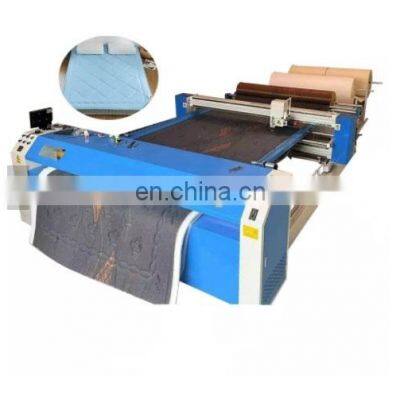 Computerized single quilting machine for mattresses and blankets quilt cutting making machine1. Automatic mattress feeding, spreading, sewing and cutting, the speed can reach 2500 rpm. 2. Equipped with automatic tangent,broken line detection, infrared protection, back filling and quilting. 3. The automatic oil supply system effectively lubricates the parts of the machine head and extend the service life of the machine. 4. With needIe distance seIection, angIe correction and pattern scaling. . 5. Adopt servo motor control, high precision. 6. Imported large rotary hook, no need to replace the bottom thread frequently 7. The computer with powerful memory ability can quilted all kinds of complicated graphics accurately, intermittent start can keep the pattern continuous quilting, low noise and vibration,accurate and stab Ie operation. 8. Special pattern can be customized. 9. Using servo motor control, higher precision and more output 10. Suitable for the continuous automatic production of simmons mattress, quiIt and sofa cushion products.Specification: ModelJX-3500Power8.8kwQuilting speed3000r/minQuilting thickness<80mmInstall size8500*3500*1600mmWeight3000kgPattern formatDST or DATQuilting width<2400mm Machine photoes: