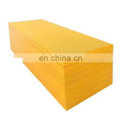 Product DetailsHigh Quality Molded FRP Grating Fiberglass Grating for Platform WalkwayMolded FRP Grating: How it is Made??Molded fiberglass grating is manufactured in a one-piece construction process by interlacing pre-wetted glass reinforcing strands in a liquid resin matrix within a given configuration. Once the resin matrix has cured, the molded grid is removed from the mold.The one-piece construction ensures that all glass is impregnated with resin.Molded Square Mesh Grating Our most popular FRP product, molded square mesh grating is available in 1”, 1-1/2”, and 2” depths. The 1” and 1-1/2” deepproducts are produced with a 1-1/2” square mesh while the 2” deep products are produced with a 2” square mesh. The square pattern of the panels provides bi-directional strength and facilitates easy layout and fabrication.Micro-Mesh Molded GratingThe 1/2” square opening of Micro-Mesh molded FRP gratings is ADA conforming and makes them popular for applications in the public way. Available in 1” or 1-1/2” depths, Micro-Mesh has bi-directional strength which facilitates efficient layout and fabrication.Available in the full range of resins offered for molded products, Micro-Mesh surface options are concave meniscus, optionalsmooth (sanded) surface, or optional coarse or fine grit surfaces.Molded Rectangular Mesh Grating Available in 1” deep, 1” x 4” pattern, rectangular mesh FRP gratings are commonly used for walkways and trench applications. When selecting rectangular mesh grating it is important to specify the span (rectangular opening) of the grating perpendicular to thesupporting structure.All products are available with the concave meniscus surface or the optional grit surface (coarse or fine grit).Specification(mm)Panel size(mm)Weight(kg)Customize38*38*251220*366054 yes38*38*301220*36607038*38*381220*36601000*4007888150*50*501220*36609819*19*38*38*301075*36267238*38*651030*404014140*40*401010*40408119*19*38*38*381220*36609225*25*50*50*301220*366062Product Details Show Smooth surface of frp gratingFrp grating with smooth surface is normal use in walkway.Grating contains strong stress resistance, Lightweight, high strength. Gritted surface of frp grating Good mechanical property Inflaming Retarding Resin content is 35%, fiberglass content is 65%, which increase the rate between strength and weight. Concove surface of frp gratingFrp grating with concave surface can customized size Yellow, green, black, grey, transparent, etc .Customized color are available.Product DisplaysOur producing types of frp grating, from mesh size to panel size, and we can customized size of fiberglass grating according your requirement.Our factoryProduct FeatureMolded FRP Grating Feature Lanyu isn’t just a molded FRP grating supplier — we also fabricate our products so you can rest assured that youget the best product customized to your specific application. We take great pride in quality control for our products. If you would prefer to fabricate your molded grating, refer to the following procedures: * Safety precautions: When cutting Molded grating, always wear safety goggles to protect your eyes and a dust mask to reduce dust inhalation. Also, wear gloves and a shop coat with neck and sleeves taped to prevent skin irritation. Work in a well-lighted and ventilated area. * Cutting molded grating: Depending on the amount (linear feet) of grating to be cut, a variety of shop tools can be used. For best results, use a heavy-duty rotary saw with a masonry, carbide, or diamond coated blade. Firm support of the panels will prevent shifting. Turning the panel bottom-side-up gives a smooth surface for the saw to ride on and reduces chipping. Be sure to allow for the blade kerf (3/16″) when measuring. * Grinding: All cut edges should be ground smooth. Use a coarse grit, open coated (resin) grinding disk. * Finishing: All cut surfaces should be coated with resin to prevent corrosion of glass fibers. A light coating of two-part resin system or urethane spray paint is satisfactory. * Installation: Provide for a minimum of 1-1/2″ support around all panel edges. Use type “M” stainless steel (type 316) clips every 48″ (maximum) for full 4′ x 12′ panels, a minimum of four clips for any piece.Related productsContact usIf you are intersted in 38*38*30 heavy duty offshore grating floor GRP FRP walkway plastic grating, please feel free to contact us!
