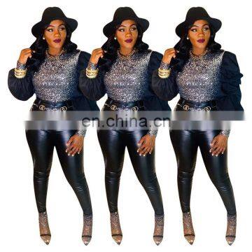 Fall Fashion Puff Sleeve Ladies' Blouses Women Casual Sequins Decoration Sexy Shirts