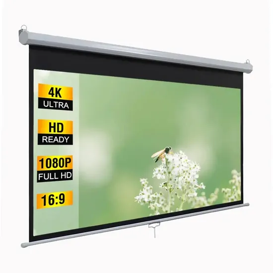 Manual Wall Screens are perfect for any classroom or office. Easily mount the screen to the wall or ceiling. With self-lock device, the screen can be stop at any position. This economical screen is ideal for small audience viewing. The screen is widely used in hotels, business centers, meeting rooms, schools, entertainment centers etc.