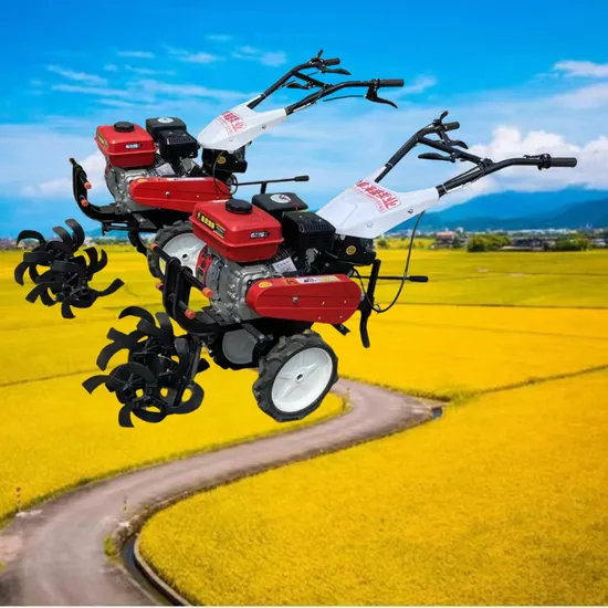 Rotary tilling machine is designed according to hills, mountains, small plots, large height difference, and no machine tilling road. Suitable for sandy land, economic planting of soil loosening, ploughing and weeding. Widely used in field farming, furrow building, plastic greenhouses, tobacco, nursery, orchard, garden management, tea and other planting operations, with light weight, small size, simple structure, easy operation, easy maintenance, low fuel consumption. Mainly used in rice fields and vegetable fields, but also used in orchards. Heavy horizontal axis rotary tiller tillage depth of up to 20 to 25 cm, mostly used for cultivation of shrub land, marsh and grass wasteland farming. The working parts include a rotary plow cutter roller and a number of soil cutting blades evenly configured according to multiple spiral lines, driven by the tractor power output shaft through the transmission device, and the common speed is 190 ~ 280 RPM. The rotation direction of the knife roller is usually consistent with the direction of the tractor wheel rotation. High production efficiency can loosen the hard soil under the fruit tree and facilitate fertilization. Using this product can quickly and easily complete the work, instead of tiring and heavy traditional farming methods.