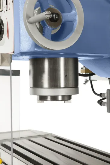 Main features: Solid, grey cast iron construction allows heavy table loadLarge flat guide guarantees stability at heavy millingHandwheel allows feed (100 mm) of oversize spindlePolished table, supported well by wide saddleWide speed range (20 - 1800 rpm) feat. high torque and spindle brakeStepless speed adjustment comes standardInductive hardened and polished guide waysReinforced saddle in robust box constructionColumn and machine stand are solidly designedation