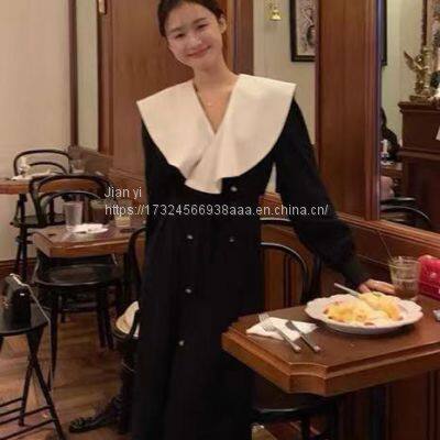 Korean drama female main flavor, rich gold series large lapel dress, new long sleeve skirt.