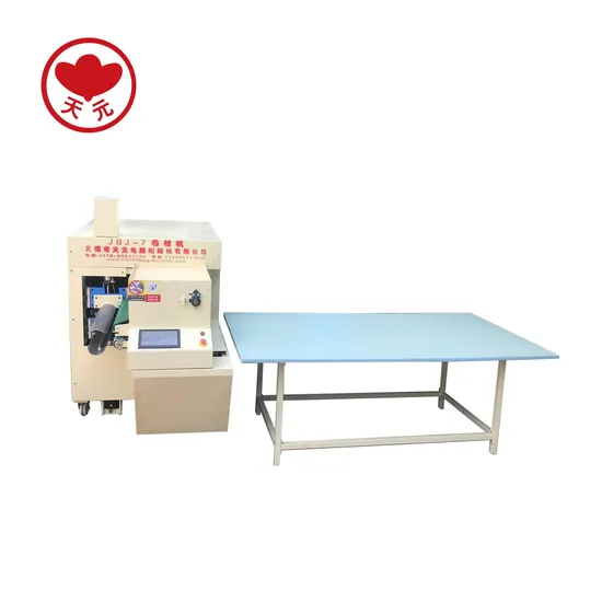 is used for coiling quilt,pillow,cushion,sleeping bags to insert into packages directly.After rolling packing,the volume of product become smaller and mancarried in order to save transport costs. In one minute, it can pack 4 pieces of quilts so it can spare large labor cost.