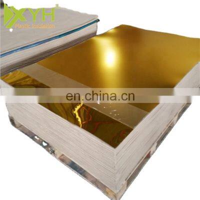 Anti-broken Gold/ Silver PMMA Mirror Acrylic sheetProduct DescriptionDetail Description/ Anti-broken Gold/ Silver PMMA Mirror Acrylic Sheet :Acrylic sheet Features: 1. Excellent transparency.2. Good mechanical performance.3. Good electrical insulation.4. Stable and durable.5. Non-toxic.6. Superior impact resistance.7. Crack resistance.8. Superior weather resistance.9. UV light resistance.10. Chemical resistance.11. Stable color under outdoor exposure. Acrylic sheet Applications: 1. Indoor decoration board, partition board in office and house.2. Product design.3. Engraving and signboard.4. Making gift items.5. Making kitchen and sanitary application.6. Door and window cover. Physical Property/ Anti-stastic Gold/ Silver PMMA Mirror board Acrylic Sheet: Specific gravity1.19-1.20HardnessM-100Absorptivity of water (24h)0.30%Coefficient of Rupture700kg/cm2Coefficient of Elasticity28000kg/cm2Coefficient of Rupture1.5kg/cm2Coefficient of Elasticity28000kg/cm2Transmittance (parallel rays)92%Full rays93%Heat Distortion Temperature100ocUltimae Temperature of Continuous operation 80ocThermoforming Ranges140-180ocInsulation Strength20V/mm Why are we your best choice? 1. Top 50: One of Top 50 Plastic Insulation manufactures in China Mainland. 2. Good Quality: All our products are under strict quality control. Passed various tests such as SGS, FTS. 3. Flexible Manufacturing Capability 4. Professional Sale Team: To serve you in a professional way and maintain high levels of customer satisfaction. 6. Good Reputation: Received positive comments from customers and enjoy good reputation in plastic industry in China. Finished Products Packaging & ShippingCompany Information Our Team FAQ 1. Q: Can you give me a discount price?A: It is depending on the volume. The larger the volume is, the more discount you can enjoy.2. Q: Why is your price a bit higher than other Chinese suppliers?A: To meet the requirement of different customers and areas, our factory manufactures various kinds of quality for each item at a wide range of prices. We can offer the products of different quality levels depending on customers’target price.3. Q: How can I get a sample?A: Normally small samples (sizes not larger than 150*150mm) can be sent free of charge and customers just need to bear a little shipping charge, or you can provide your DHL, FEDEX, TNT, UPS courier account number to us. For bigger sizes, it depends.4. Q: How can you guarantee the quality of mass production is same with the sample sent to me before?A: Our warehouse staff will leave another same sample in our company, with your company name marked on it, which our production will be based on5. Q: How can you deal with quality issues that customers feedback after receiving the goods?A: We will follow below steps to solve the quality issues the may occur.1) Customers take photos of unqualified goods and then our sales staff will send them to Engineering Department to verify. 2) If the issue is confirmed, our sales staff will explain the root cause and take corrective actions in coming orders.3) Finally, we will negotiate with our customers to make some compensation.6. Q: What is the lead time of production? A: 3-15 working days starting from the receiving date of the deposit. 7. Q: What is the manner of packing?A: All goods are packed in a sustainable manner(Standard Export Package).1) Sheets and rolls: All sheets and rolls are carefully packed with protective PE film, plastic wrap, corner support, and iron strips etc. to ensure the safety of long-distance transportation. Rolls will be in protective PE Bubble Bag additionally.2)Rods: Rods are normally packed in tailored wooden cartons. Anti-stastic Gold/ Silver PMMA Mirror board Acrylic SheetAnti-stastic Gold/ Silver PMMA Mirror board Acrylic SheetAnti-stastic Gold/ Silver PMMA Mirror board Acrylic Sheet